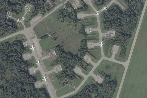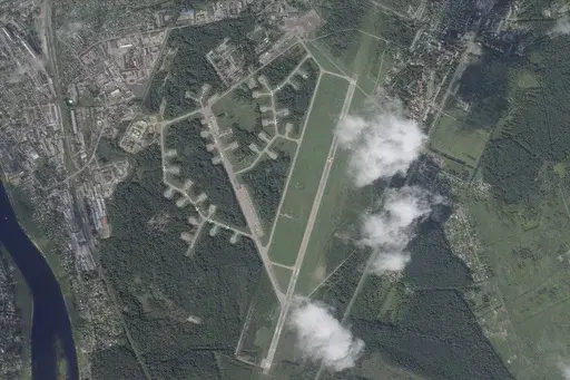 The images taken Thursday show Princess Olga Pskov International Airport, which is a dual military-civilian airport about 700 kilometers (400 miles) north of the Ukrainian border and near Estonia and Latvia.