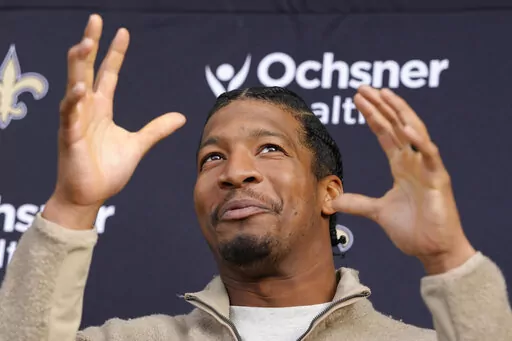 LONDON (AP) — New Orleans Saints quarterback Jameis Winston had said “I'll be out there” for practice on Thursday. He wasn't.