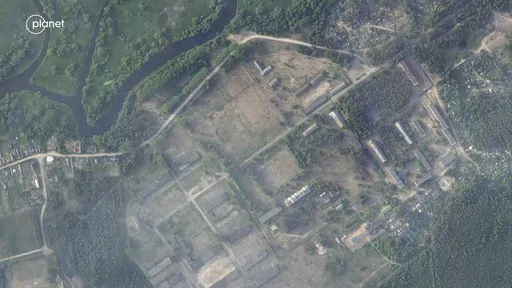 The images provided by Planet Labs PLC suggest that dozens of tents were erected within the past two weeks at a former military base outside Osipovichi, a town 230 kilometers (142 miles) north of the Ukrainian border. A satellite photo taken on Jun. 15 shows no sign of the rows of white and green structures that are clearly visible in a later image, dated Jun. 30.