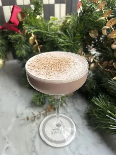 Pink-Swann finishes hers off with some grated nutmeg for an added seasonal touch, creating a “beautiful, decadent, dessert-like cocktail that’s not too sweet” and would pair well with your Christmas pud.