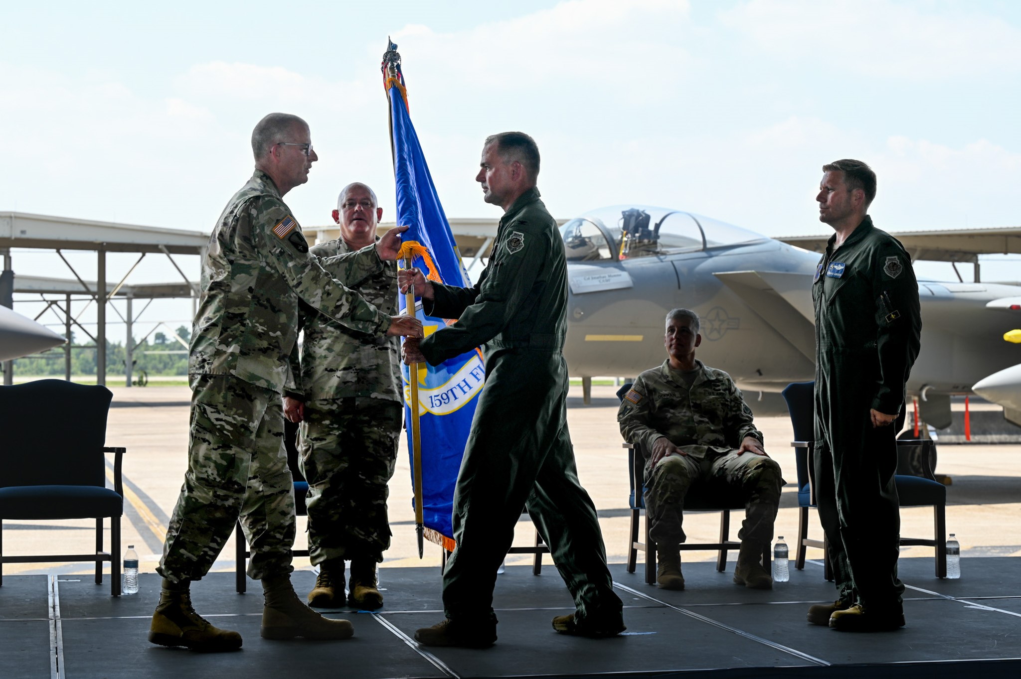 NEW ORLEANS – Col. Jonathan D. Mumme relinquished command of the 159th Fighter Wing (159 FW) to Col. David M. Anderson in an official ceremony held at Naval Air Station Joint Reserve Base New Orleans, June 30.