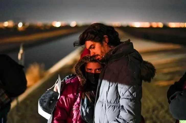 FILE - A couple from Cuba wait to be processed to seek asylum after crossing the border into the United States, Friday, Jan. 6, 2023, near Yuma, Ariz. An underground market has emerged for migrants seeking U.S. sponsors since the Biden administration announced last month that it would accept a limited number of people from Venezuela, Cuba, Nicaragua and Haiti. Applicants for the humanitarian parole program need someone in the U.S. to promise to provide financial support for at least two years.