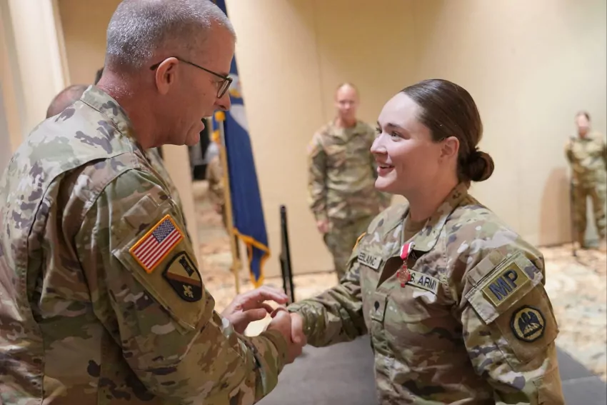 The Louisiana National Guard's Combined Support Maintenance Shop (CSMS) calibration team became the first National Guard lab to be presented the best CSMS Calibration Team award, a new award that was started this year, during a ceremony at the LANG's CSMS shop in Pineville, La., May 24, 2022. The award was presented by Dr. Richard Parker, the executive director of the U.S. Army Test, Measurement, and Diagnostic Equipment Activity (USATA), and Mr. William Singer, the deputy of production for USATA. (U.S. Army National Guard photo by Staff Sgt. Noshoba Davis)