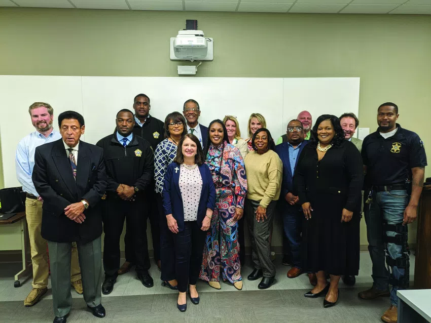 Members of the Sixth Judicial District Drug Court come together. In front, from left, are Iree Jackson, Judge Laurie Brister, Judge Angela Claxton and MPSO Deputy Felton Moore In the middle row, from left, are Bradley Sloane, ECSO Deputy Tystin White, Elisha Lucas, Brittany Smith, Alisa Bell, TPSO Chief Deputy “T” Spillman and John Hogue. In back, from left, are ECSO Deputy Andrew Tibbs, Raymond Cannon, Renea Keahey, Burnie Ratcliff, and Tensas Parish Sheriff Rob Rushing.