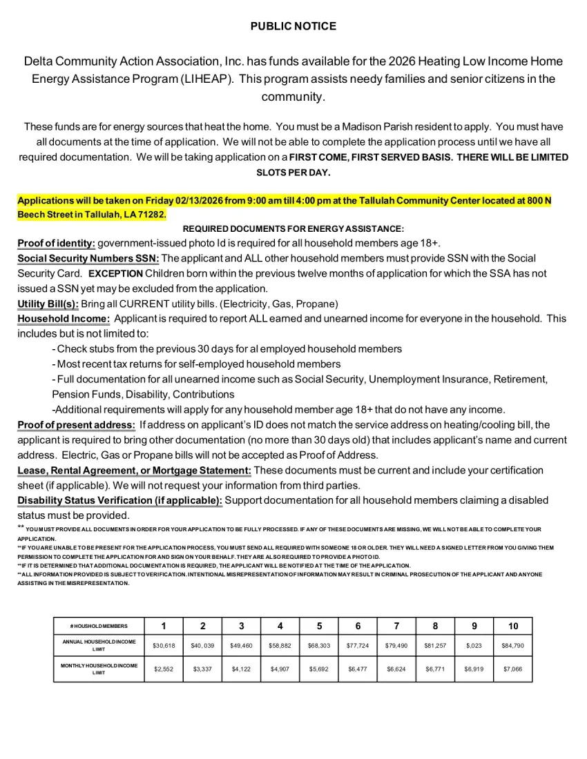 Delta Community Action Association, Inc. will accept applications Friday for the 2026 Heating Low Income Home Energy Assistance Program (LIHEAP) for Madison Parish residents