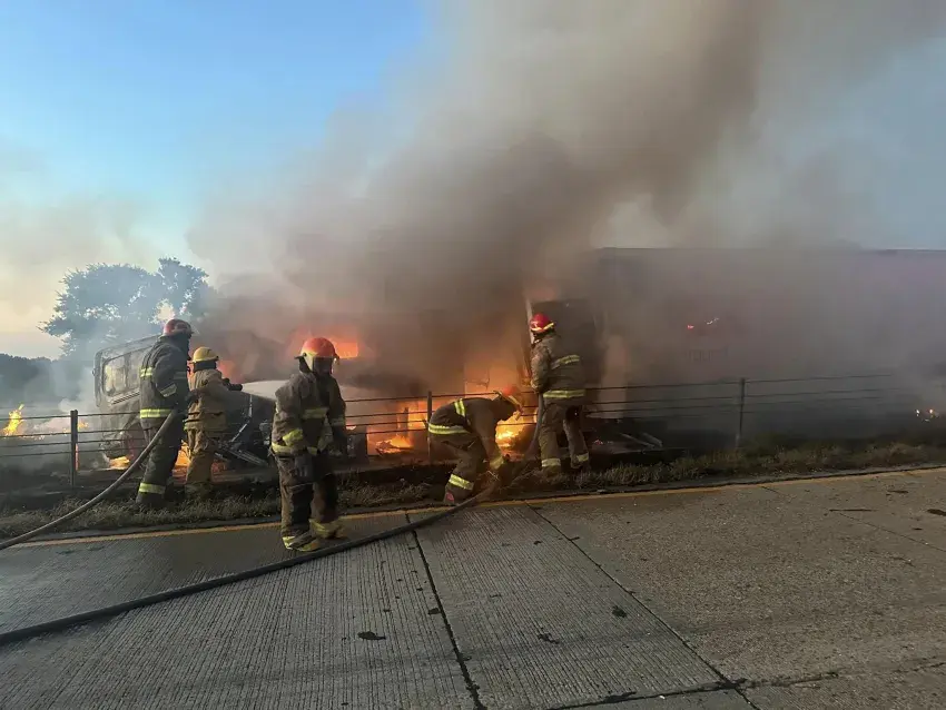 On Thursday August 08, 2024 at approximately 7:51 p.m.., the Tallulah Fire Department was dispatched to motor vehicle crash on interstate 20 just past the mound overpass. Upon the arrival of the first units arrival, a tractor trailer and a transit van were fully engulfed in flames. Firefighters deployed (2) 1 1/2 inch hand lines to bring the fire under control within 25 minutes after arriving. Unfortunately there was a fatality involved in this fiery crash. Thanks to all the firefighters who came out to help with this incident, also thanks to Mound and Delta Volunteer fire departments for water delivery and support, as well as Northeast Ambulance Service, Madison Parish Sheriff’s department and the Louisiana State Police.
