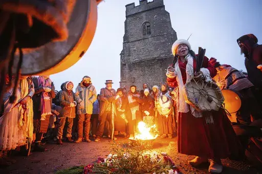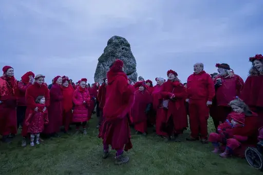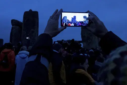 LONDON (AP) — Thousands of tourists, pagans, druids and people simply yearning for the promise of spring marked the dawn of the shortest day of the year Saturday at the ancient Stonehenge monument.