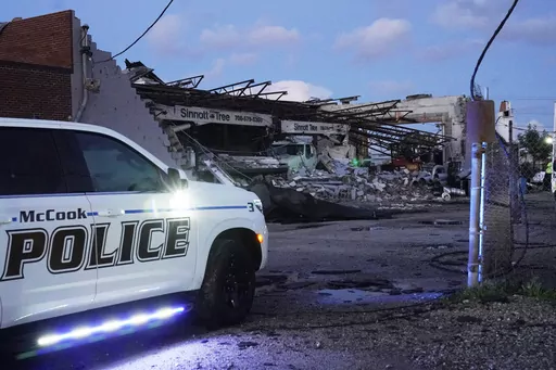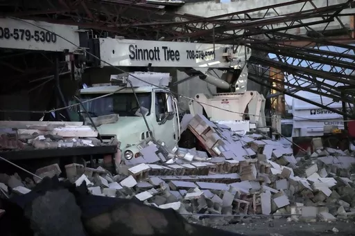 The weather service quoted an unidentified emergency manager as saying a roof was blown off in the community of Huntley in McHenry County northwest of Chicago. Huntley Battalion Chief Mike Pierce told ABC-7-TV that firefighters and other emergency services were responding to downed power lines, trees and tree branches, and that power outages had been reported. Building damage appeared to be concentrated around two apartment buildings, he said.