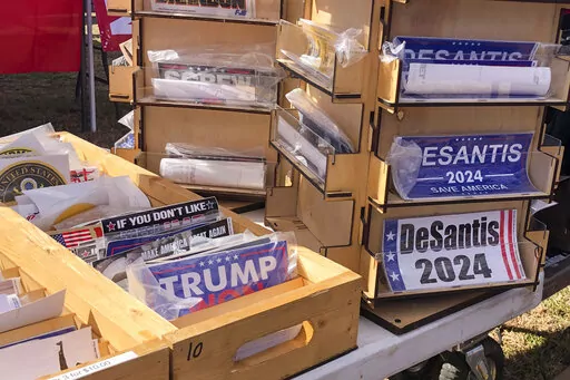 CONROE, Texas (AP) — There was something different next to the “TRUMP WON!” T-shirts, the “MAKE AMERICA GREAT AGAIN” hats and the “LET’S GO BRANDON” flags for sale at former President Donald Trump’s recent Texas rally: a collection of “DeSantis 2024” bumper stickers.