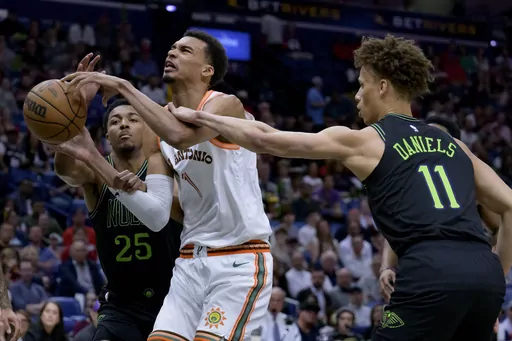 Wembanyama and the Spurs overcame a 10-point halftime deficit in sending the short-handed Pelicans to their fourth consecutive home loss. The Spurs had lost seven straight in the series with New Orleans.