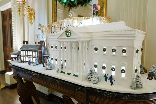 A copy of the Declaration of Independence is on display in the library, while the always-show-stopping 300-pound (136 kilogram) gingerbread White House this year includes a sugar cookie replica of Philadelphia’s Independence Hall, where the documents were signed.
