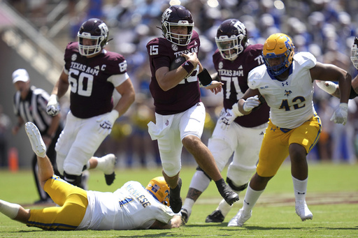 COLLEGE STATION, Texas (AP) — Conner Weigman threw two touchdown passes and Le’Veon Moss ran for two more scores before halftime as Texas A&M built a huge lead and rolled to a 52-10 win over McNeese State Saturday.