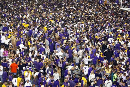 The moment true freshman tight end Mason Taylor crashed down across the goal line to clinch the victory, jubilant fans who'd filled 102,000-seat Death Valley with ear-splitting roars all night spilled onto the field from all corners. They left the goal posts intact, but lingered in celebration while numerous LSU players re-emerged from the locker room tunnel, phones in hand, to capture the scene, pose for photos and exchange high-fives.
